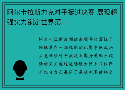 阿尔卡拉斯近期的表现再次震惊了网球界,在...