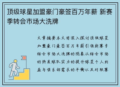 文章摘要:本文将深入探讨顶级球星加盟豪门...