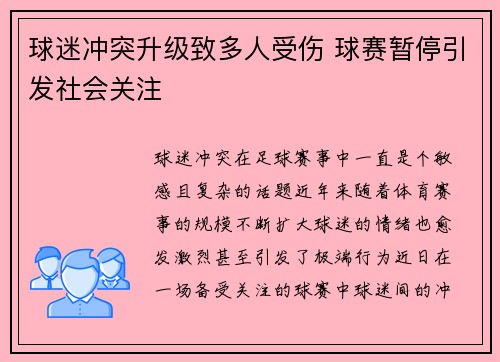 球迷冲突在足球赛事中一直是个敏感且复杂的...