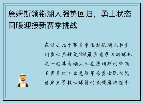 在过去几个赛季中,洛杉矶湖人和金州勇士无...