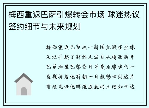 梅西重返巴萨这一新闻无疑在全球足坛引起了...