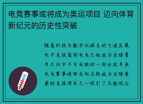 随着科技与数字化娱乐的飞速发展,电子竞技...
