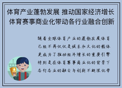 随着全球体育产业的蓬勃发展,体育已经不再...