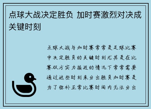 点球大战与加时赛常常是足球比赛中决定胜负...