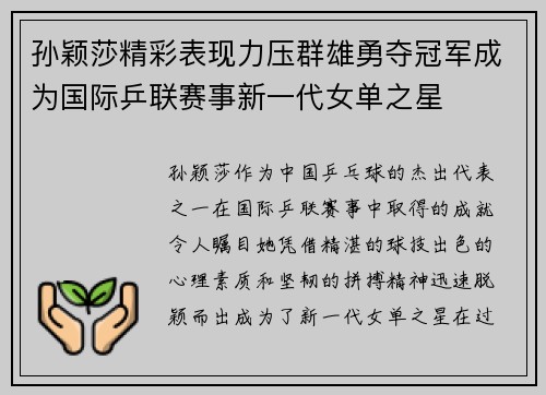 孙颖莎作为中国乒乓球的杰出代表之一,在国...
