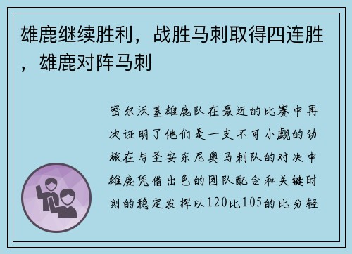 密尔沃基雄鹿队在最近的比赛中再次证明了他...