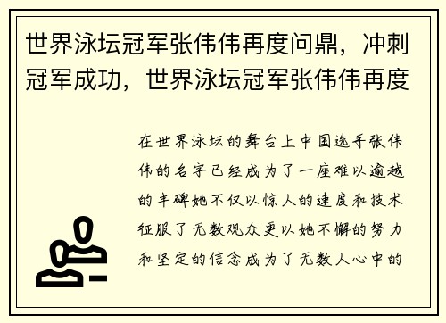 在世界泳坛的舞台上,中国选手张伟伟的名字...