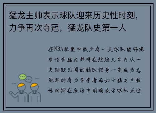 在NBA联盟中,很少有一支球队能够像多伦...