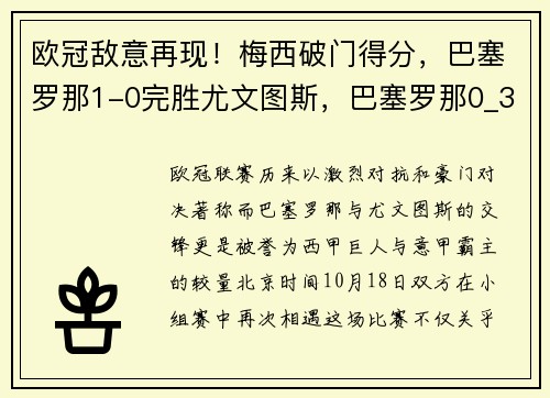 欧冠联赛历来以激烈对抗和豪门对决著称,而...