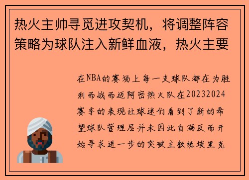 在NBA的赛场上,每一支球队都在为胜利而...