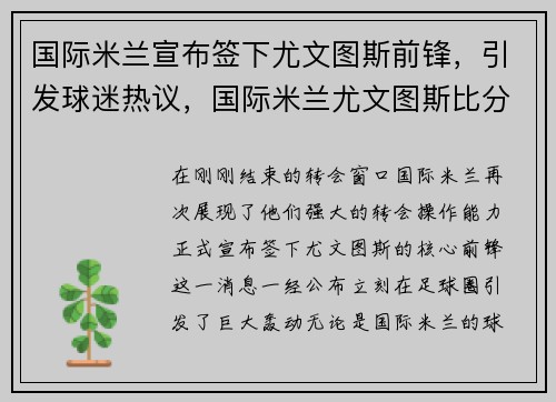在刚刚结束的转会窗口,国际米兰再次展现了...