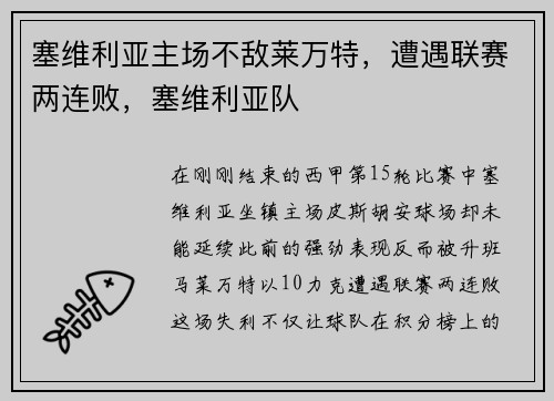 在刚刚结束的西甲第15轮比赛中,塞维利亚...