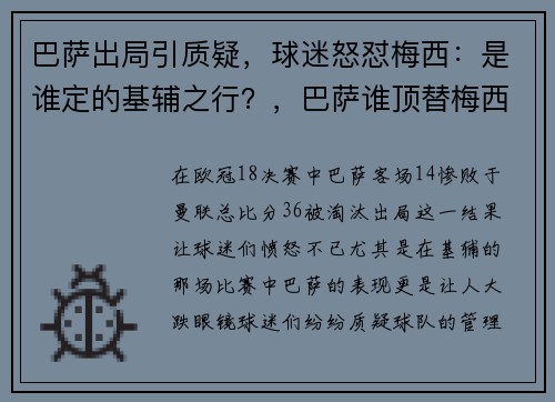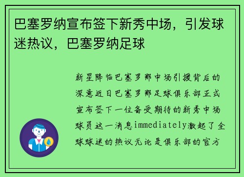 新星降临:巴塞罗那中场引援背后的深意 近...